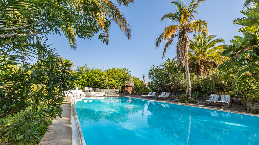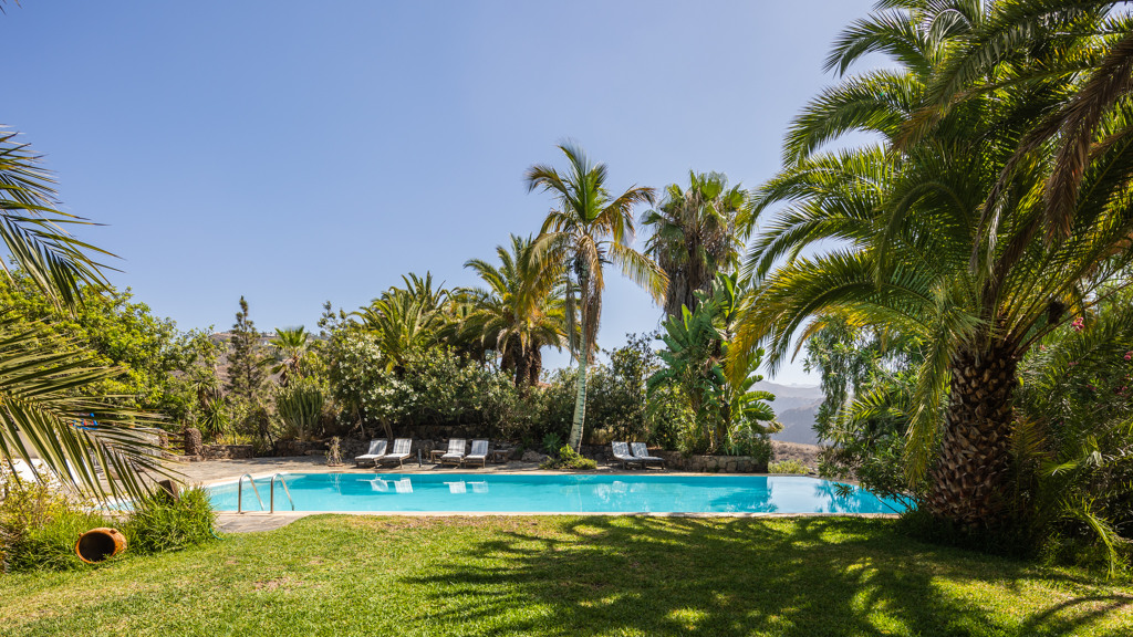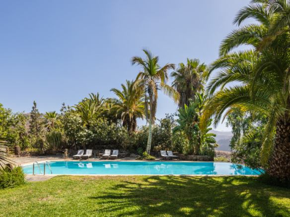 On its 175,000 metres of land there are several fincas and several houses of different styles, a wine cellar, vineyards, stables, a lake with a restaurant and dreamlike views. The main house has 990 meters built on two floors, the main one surrounding a summer garden that refreshes and invites to the green in every room. A large house designed to live music and reading, with different corners, 9 double bedrooms, 7 renovated bathrooms and several living rooms. The main living room has several spaces and heights and access to the two main suites, as well as access to the garden. The kitchen is industrial, with capacity for business, own vegetable garden and laundry. Indoor and outdoor dining room. Barbecue garden area with views of the sea and the dunes of Maspalomas. The swimming pool is surrounded by garden areas, with large trees, a senator with views and sauna.