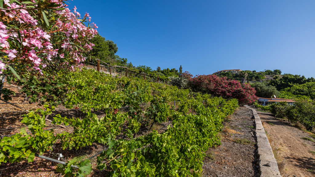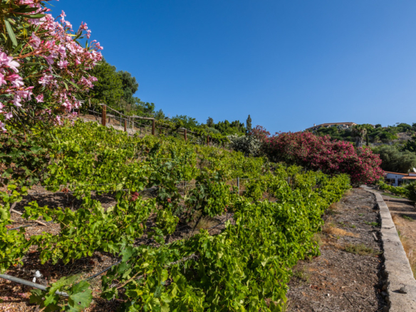The property is completed by the tennis court, the area of fruit trees and the lake with jetty and small stage with outdoor auditorium. The animal area has a riding arena and stables. Vineyards surround the property on both sides, providing an unusual image on the island, with a large annual production of wines, which rest in its natural stone cellar.