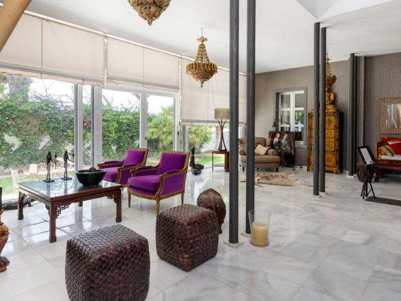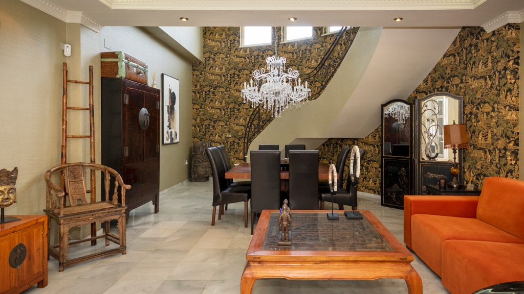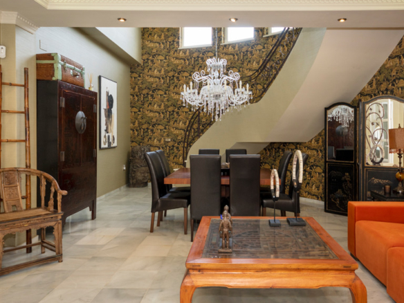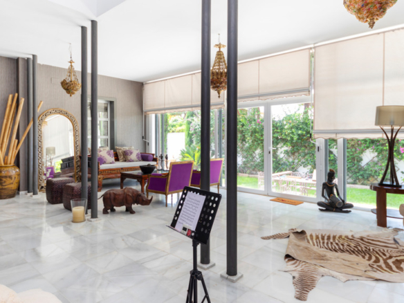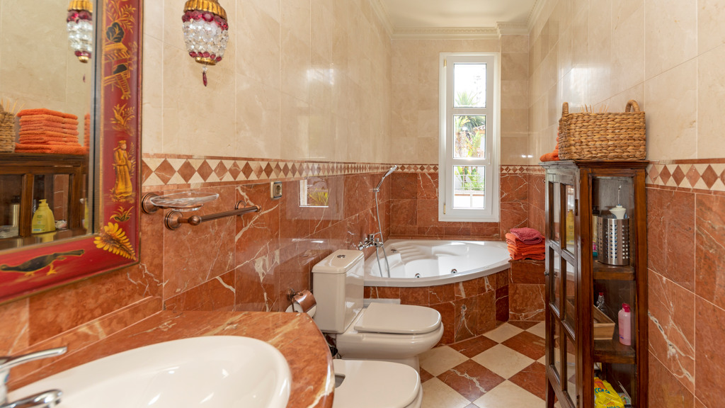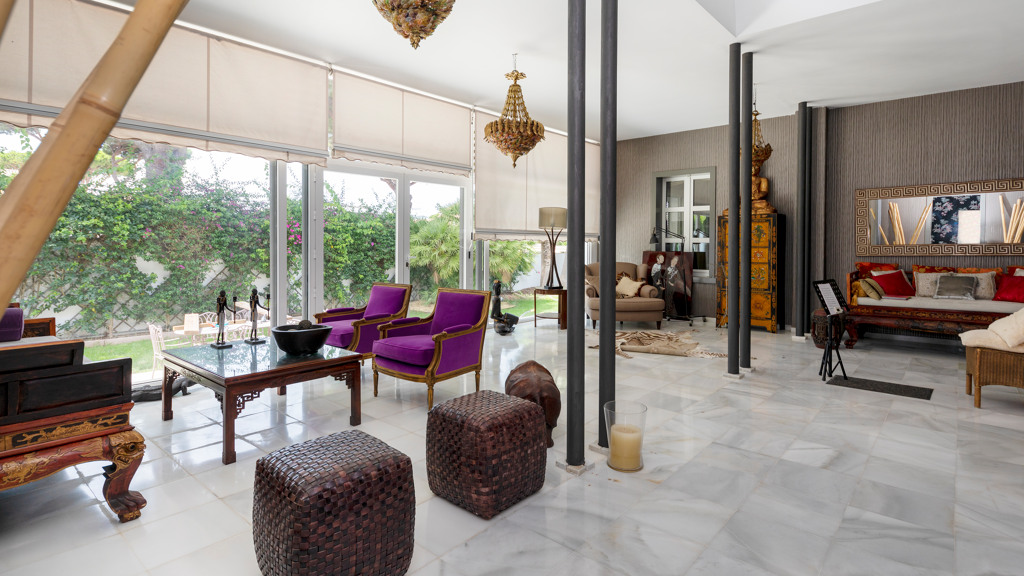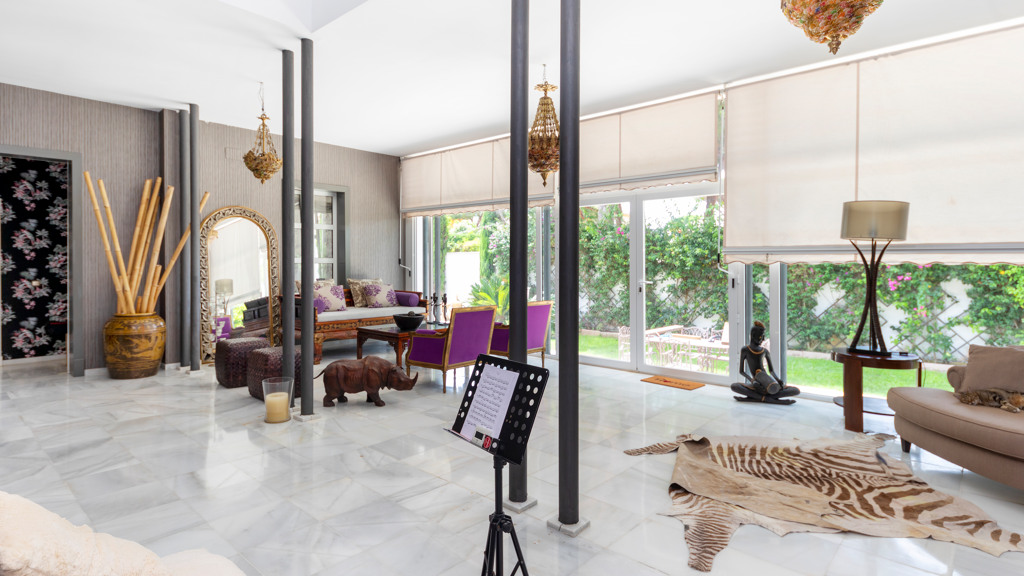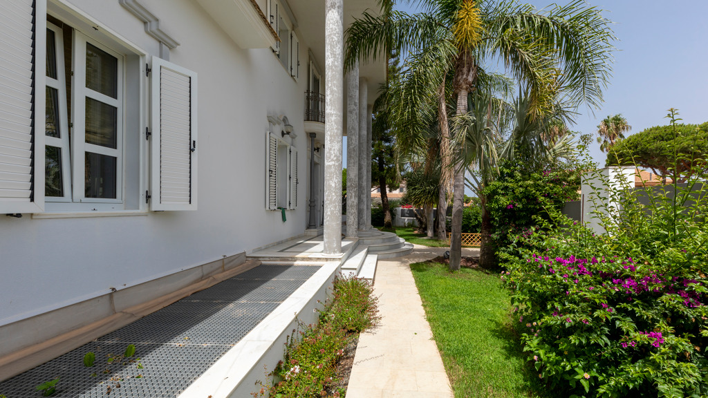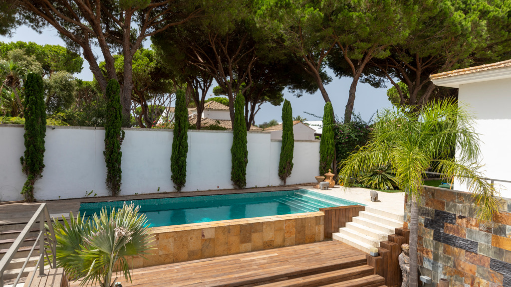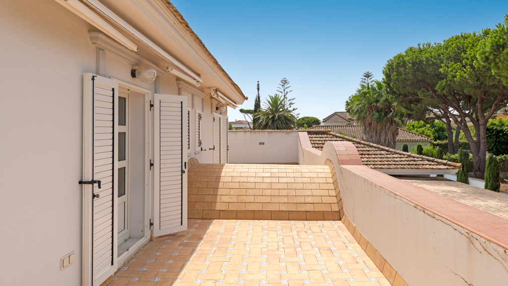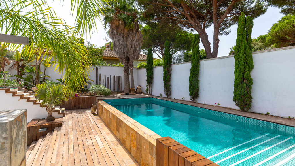 Gilmar offers you this detached villa located in one of the most prestigious and sought after urbanisations in Novo Sancti Petri. It is built on three floors on a plot of more than one thousand one hundred and ten square metres. The plot has a surface parking space with access from the street through an automatic gate, landscaped areas with automatic irrigation, swimming pool, solarium area and two open porches, one at the front and the other at the back, and a perimeter security camera.