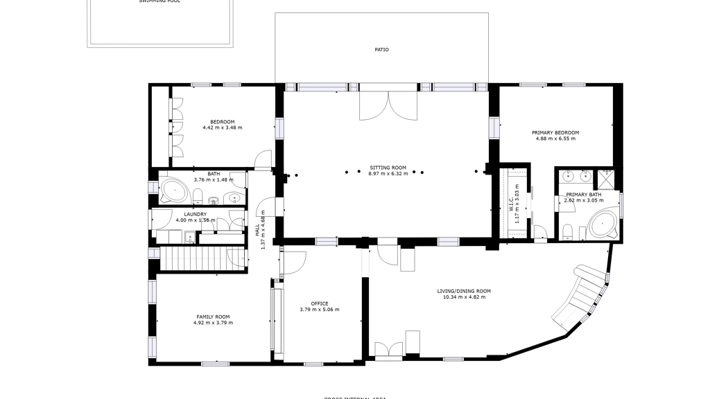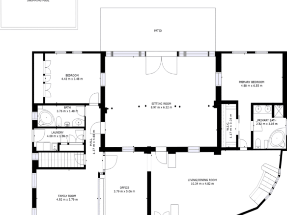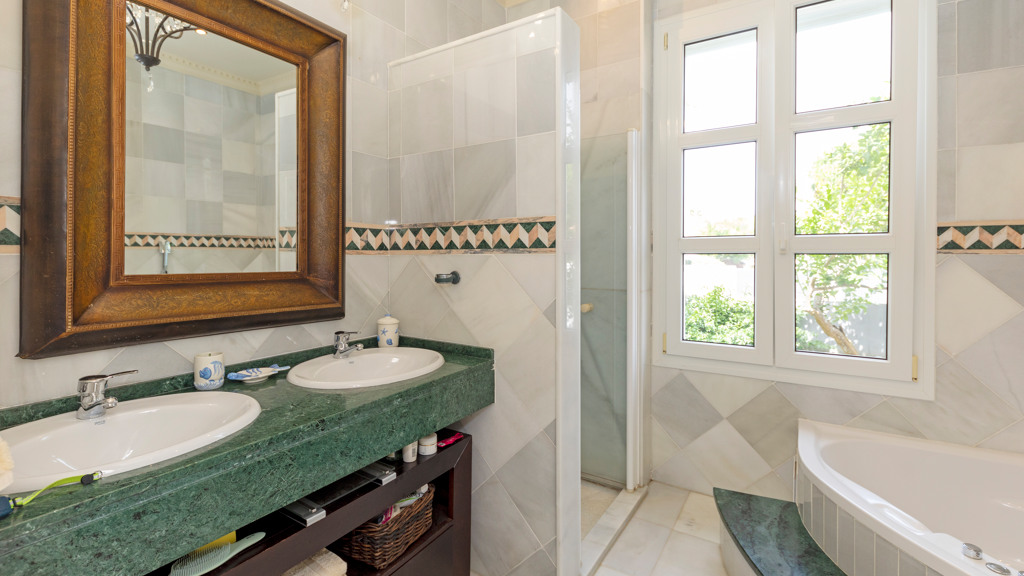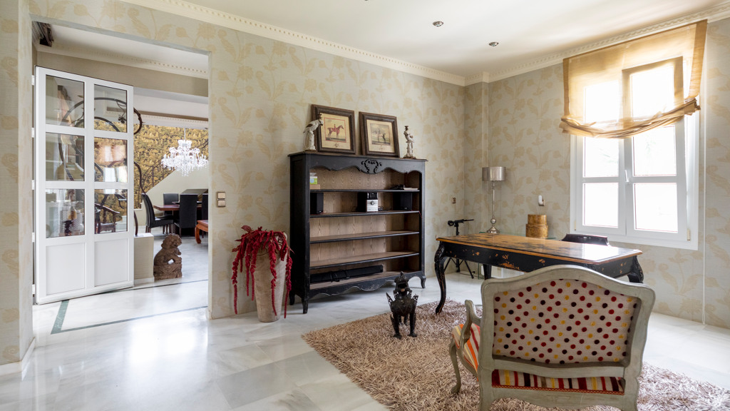 Ground floor: Entrance hall leading to a very spacious living room, a large winter lounge with large windows that provide lots of light and which is oriented towards the back garden and swimming pool, a room that is currently used as an office, a bathroom, a second lounge, a laundry room, two large bedrooms, one of which has a dressing room and the other a large built-in wardrobe with five doors. Both have large windows. Finally, there are two complete bathrooms, one for each bedroom.