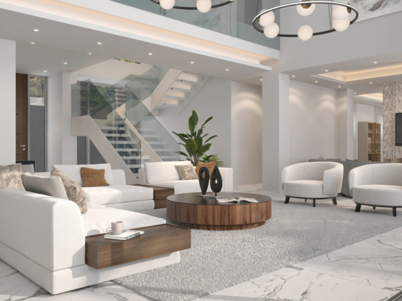 A splendid newly built villa, ready to move into, a masterpiece of architecture, innovative technology, and impeccable design. Located on a plot of almost 2,000 m², the villa has 1,038 m² of built area spread over three levels. From the moment you walk through the door, you’ll be captivated by its grandeur. With 6 elegant bedrooms and 9 luxurious bathrooms, including a guest toilet, this magnificent villa has been designed to offer maximum comfort to both family and guests. Double-height windows and glass doors flood the interior with natural light, creating a seamless connection between indoors and outdoors. The spacious living and dining spaces are ideal for both exclusive gatherings and intimate family moments. Adjacent to this area of the house is a state-of-the-art open-plan kitchen, equipped with high-end appliances that guarantee an exceptional culinary experience.