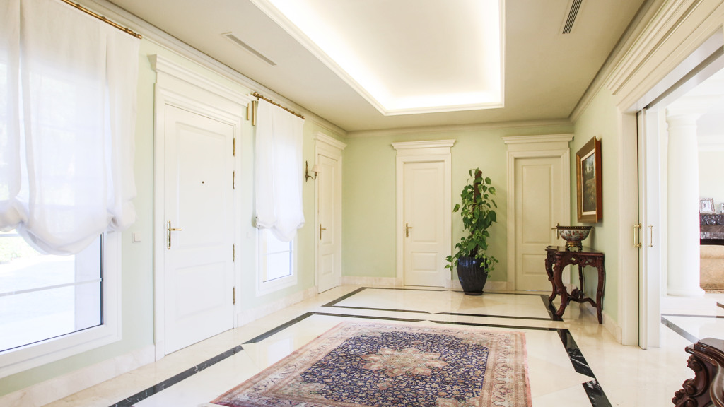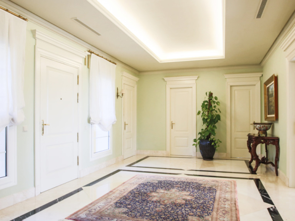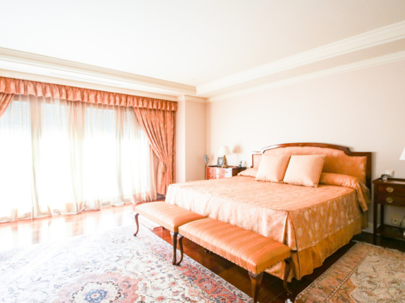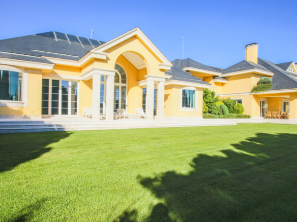 This spectacular detached villa is located in the exclusive PradoLargo residential area in Pozuelo de Alarcón, Madrid. With a plot size of 4,585 m2 and a built area of 1,233 m2 spread over 3 floors, this property offers unobstructed views from a high plot with an elegant style.