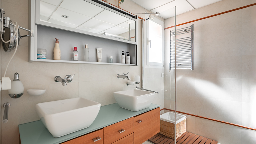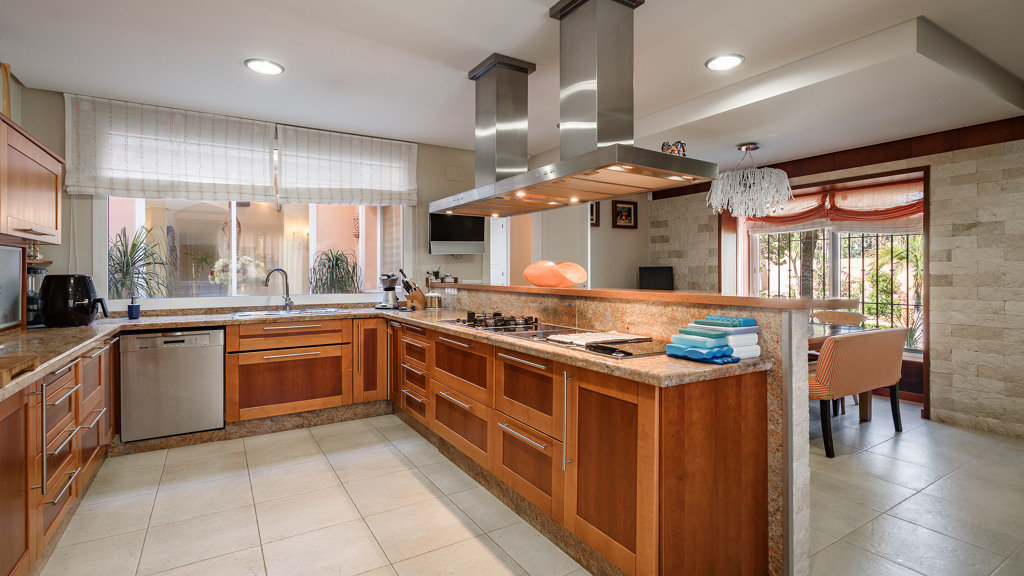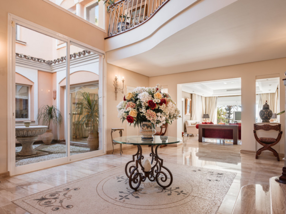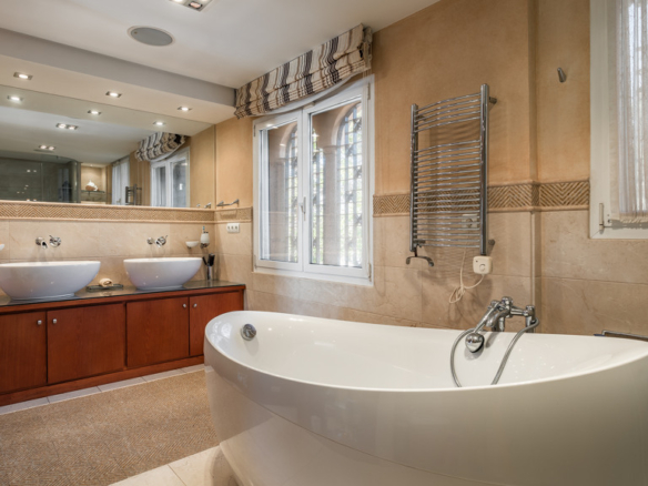 The villa is highlighted by a spacious gourmet kitchen, an elegant formal dining room and various living areas, including a TV room. The covered terrace and outdoor bar area allow you to enjoy spectacular views and Mediterranean sunshine in an exclusive setting. In addition, the separate guest flat with its own kitchen and bathroom ensures additional comfort and privacy.