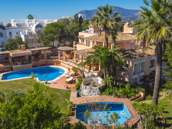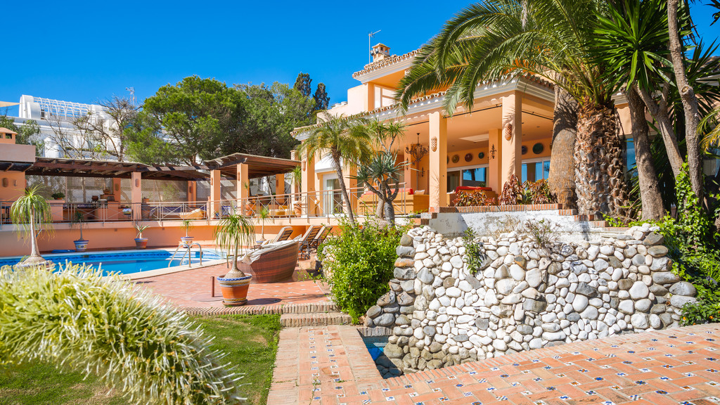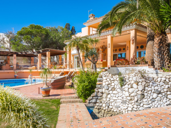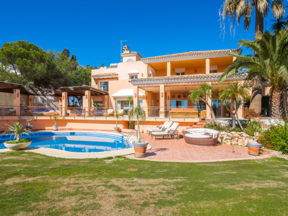 Located on the prestigious New Golden Mile, this stunning luxury villa offers an unrivalled experience of coastal living. With 8 bedrooms, 10 bathrooms and a separate guest flat, this three-level property combines sophistication, privacy and comfort in every corner.