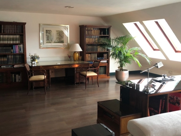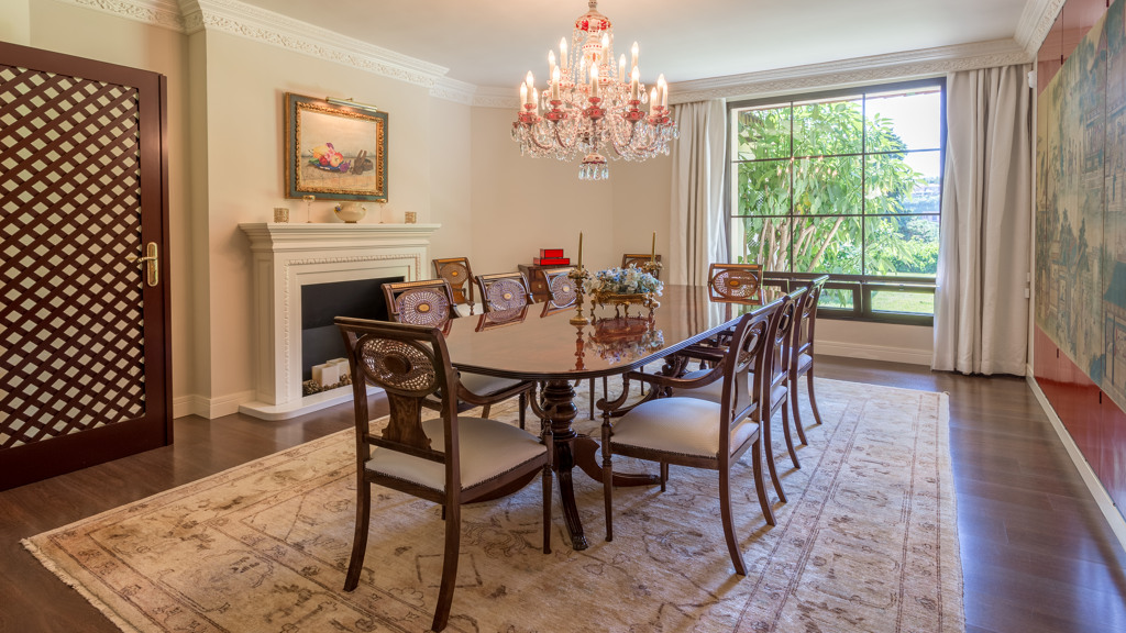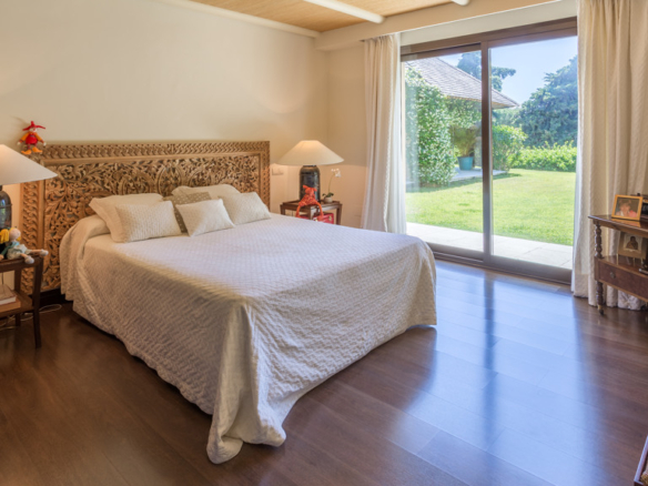 Ground floor: master bedroom with living room with fireplace, large bathroom and dressing room, two other bedrooms with bathroom en suite, another bedroom or office, bathroom with shower, dining room with fireplace, living room with fireplace, kitchen, hall, porches.