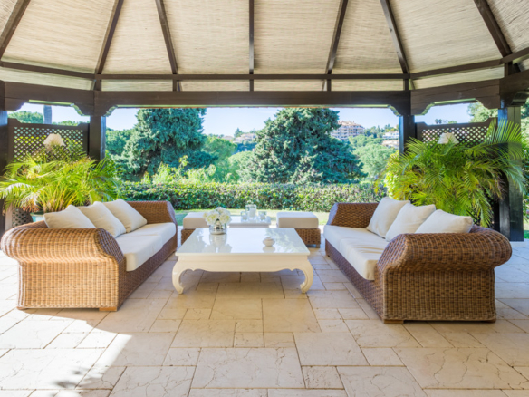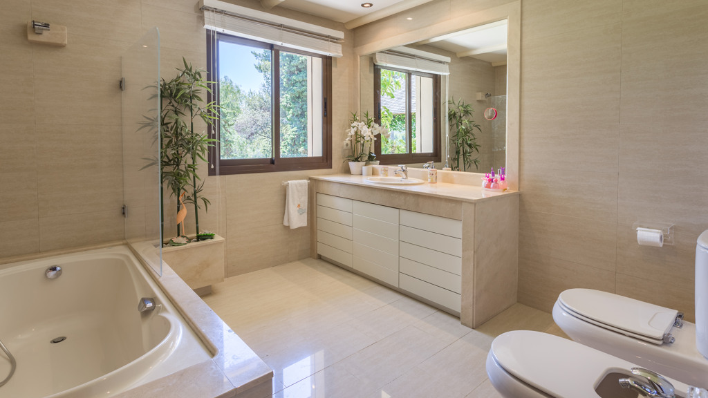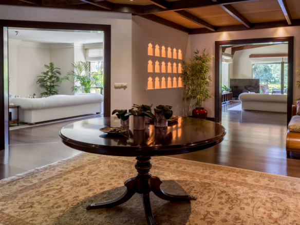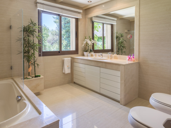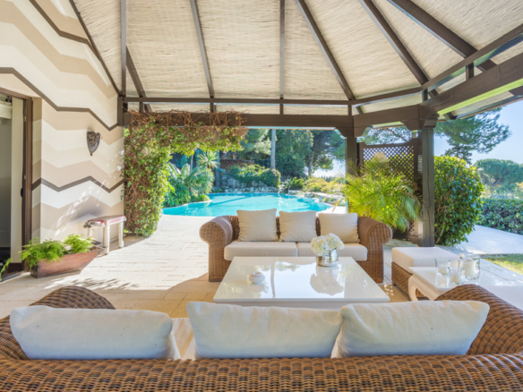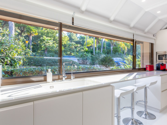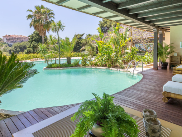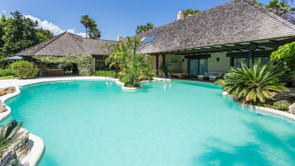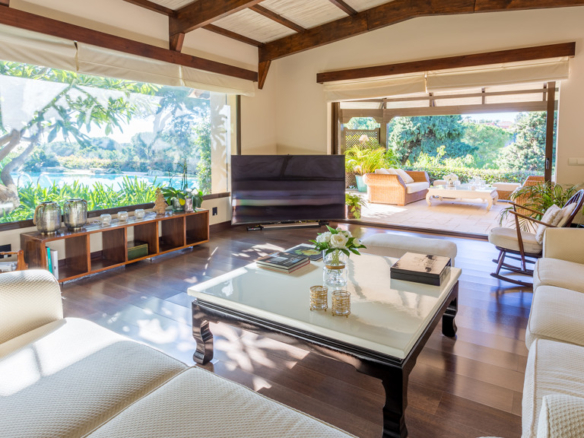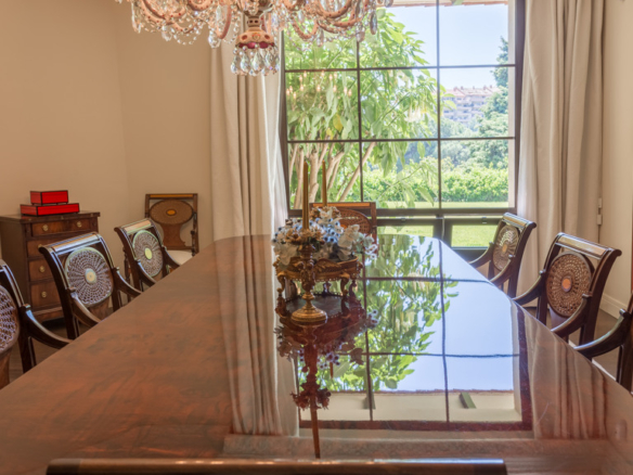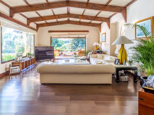 Spectacular villa in Rio Real, first line of the golf course with 1034 m2 spread over 3 floors and a plot of 1.711 m2. It comprises 6 bedrooms and 7 bathrooms, top quality finishes and impeccable state of conservation. Very private urbanization with only 6 villas in the middle of the golf course. Quiet residential area, very well communicated, a few minutes from the beach and the centre of Marbella. Southwest orientation and large garage for 6 cars.
