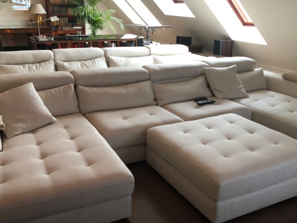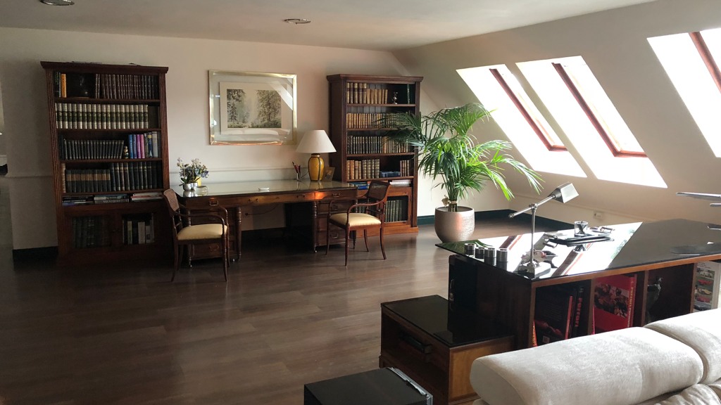 Basement: large garage for 6 cars, kitchen, three storage rooms, laundry room.