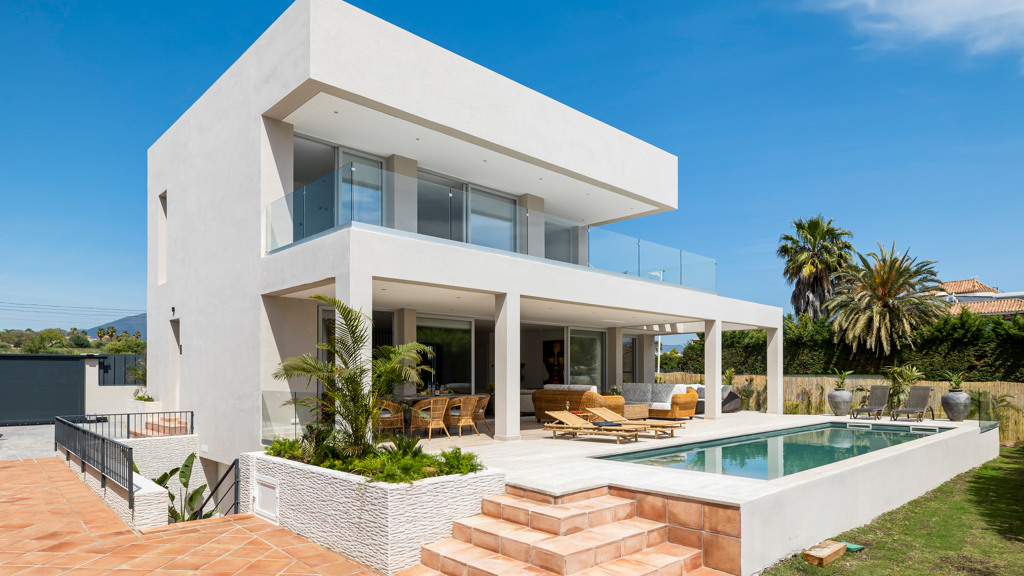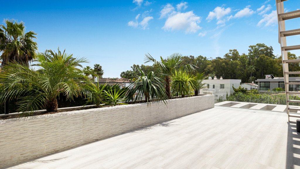 Villa for sale in San Pedro Alcántara with a built size of 450 m2 in a plot of 450 m2 distributed in 2 floors, 5 bathrooms, facing Southwest, 3 garage spaces.