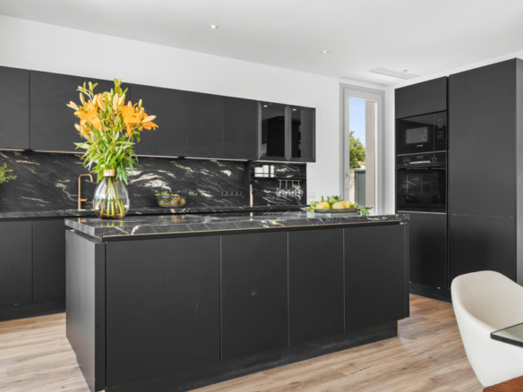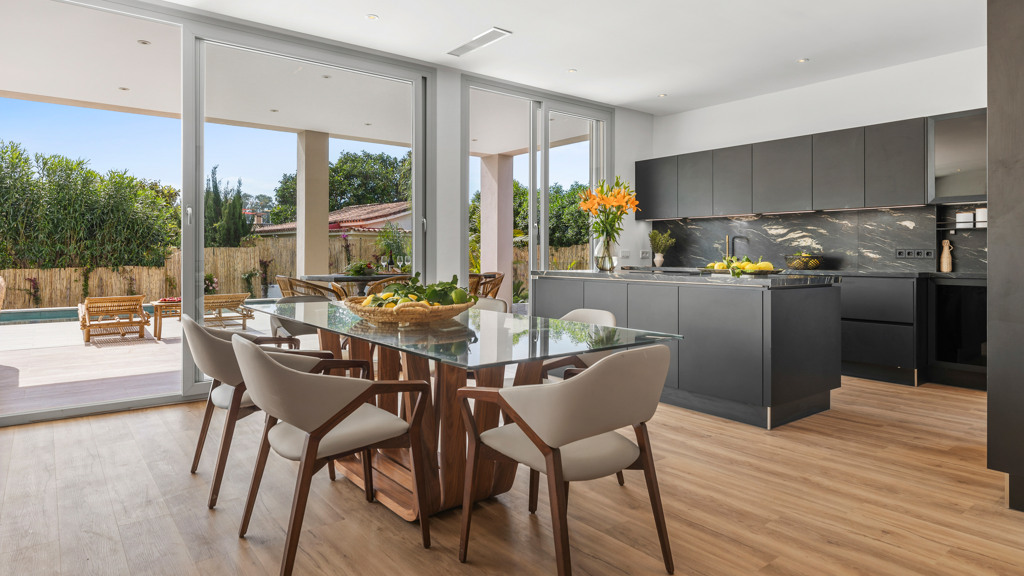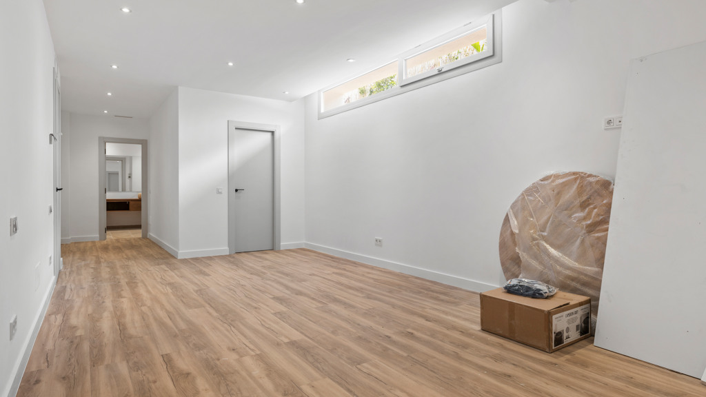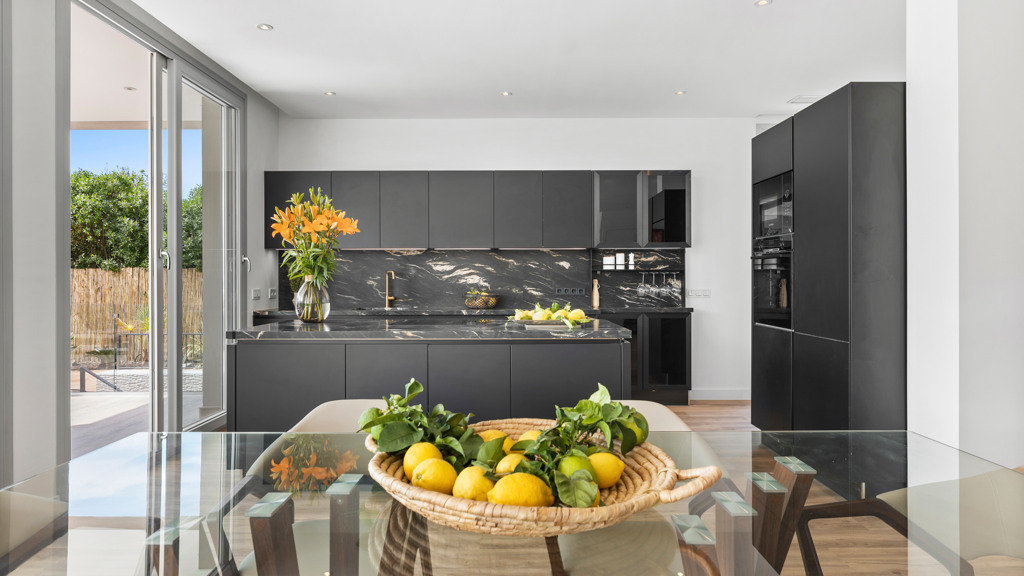 On the main floor, a generous open-plan living and dining area provides access to a covered terrace and an exquisite garden. The modern kitchen, with an elegant island and top-of-the-line appliances, becomes the heart of the home, ideal for cooking enthusiasts and social gatherings. Complementing this floor is one of the five bedrooms, each with its own private bathroom, providing comfort and privacy.