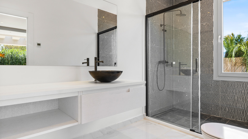 Inside, the villa boasts spacious interiors designed with exquisite taste, characterized by luxurious finishes, marble floors, and artisanal details that add sophistication to every corner. The elegantly decorated rooms offer luxurious retreats with ensuite bathrooms and ample built-in wardrobes. The master suite, with access to a private terrace, stands as an oasis of tranquility and comfort.