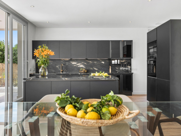 On the lower floor, the villa features an independent kitchen, providing additional space for culinary activities and social gatherings. Two spacious ensuite bedrooms, each with its walk-in closet, complement this level, offering additional comfort and privacy.