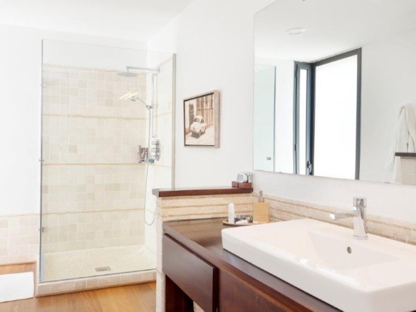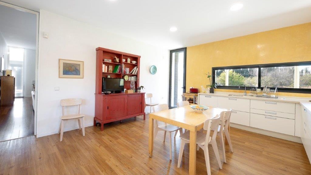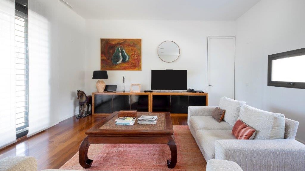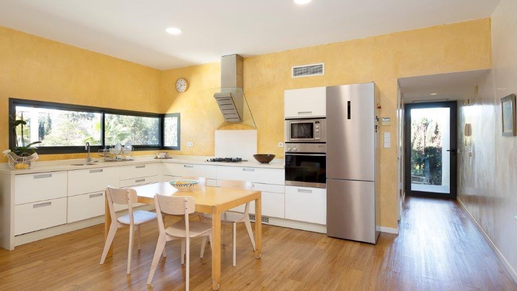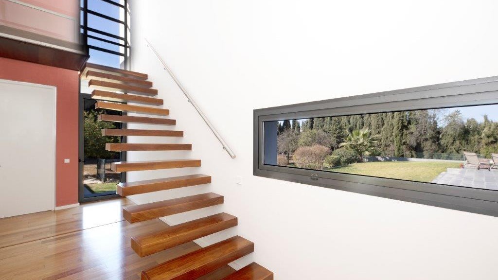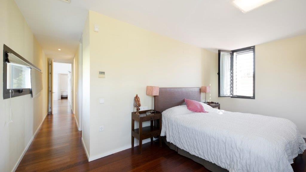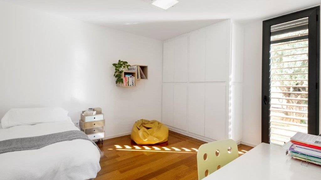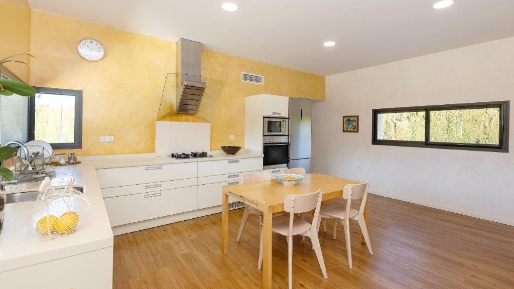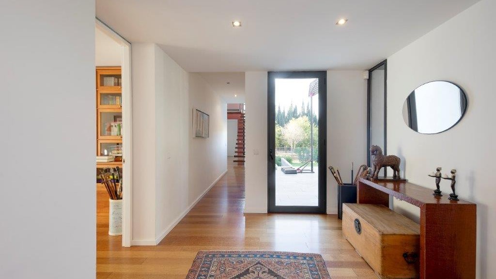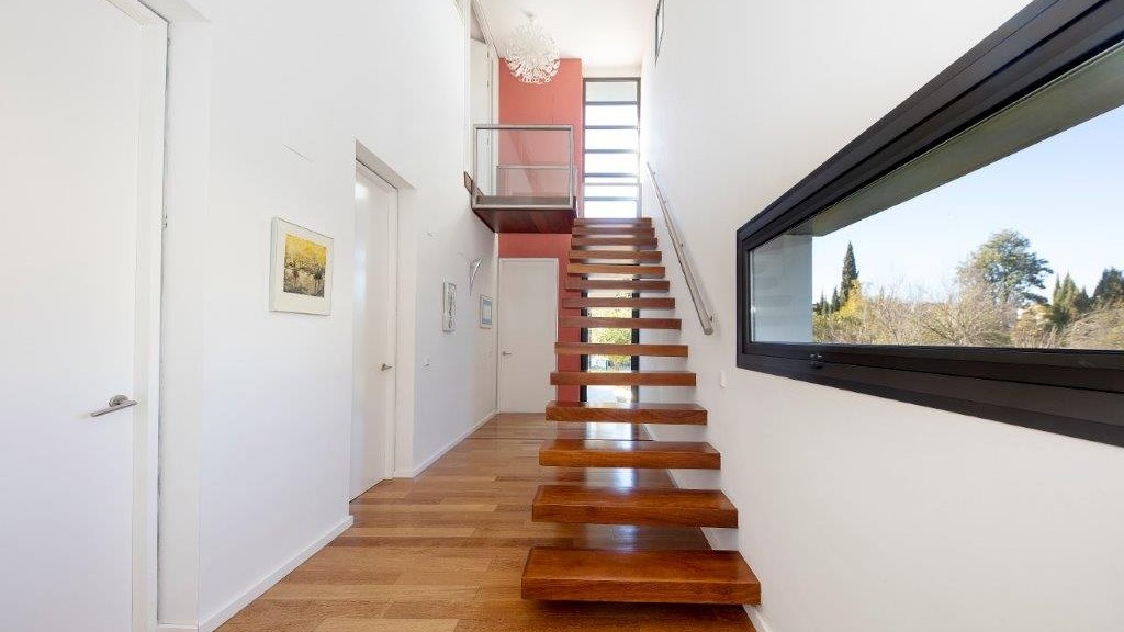 It enjoys top-of-the-range qualities, such as the high quality 14-millimetre iroko wood flooring throughout the entire floor of the house, to give continuity to all the spaces. In addition, it has top quality Tecnal brand carpentry, sliding doors to connect the spaces and horizontal windows that we find in the passage areas with tilt and turn windows.