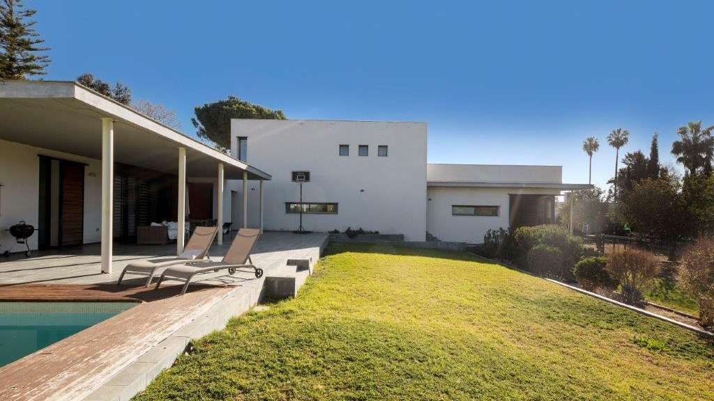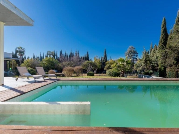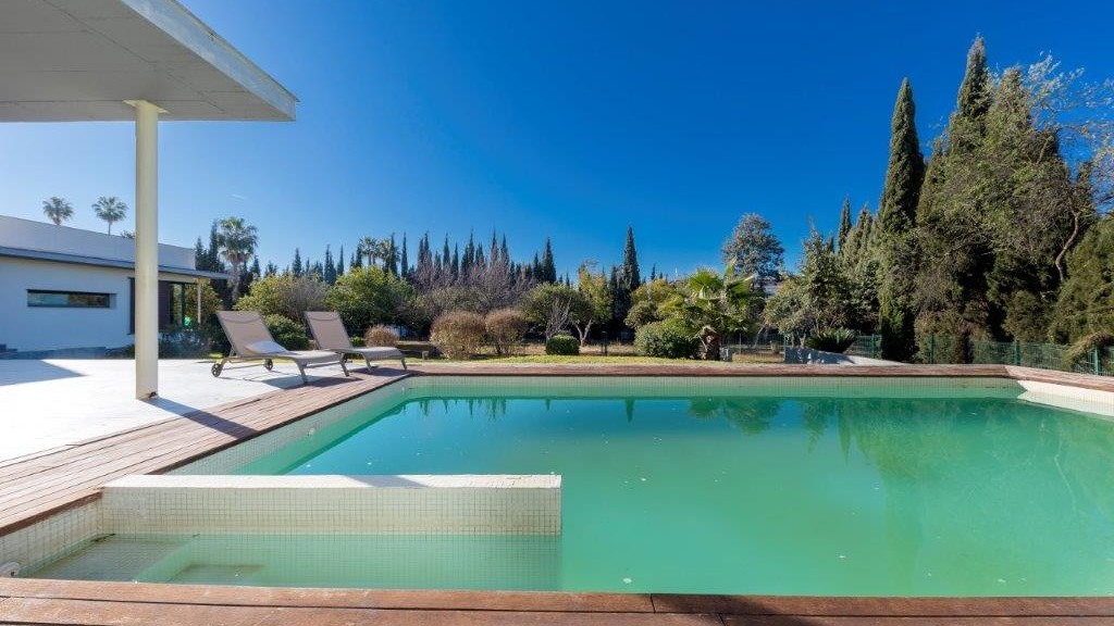 GILMAR presents this minimalist house of 410 m² built in 2005 on a large plot of 3.400 m² with garden, swimming pool, orchard and access and parking area.