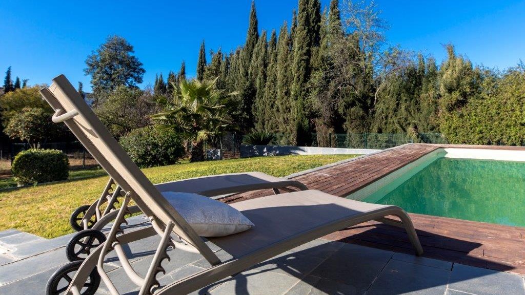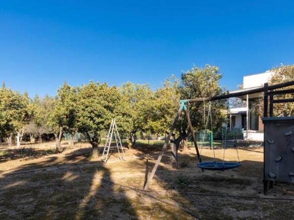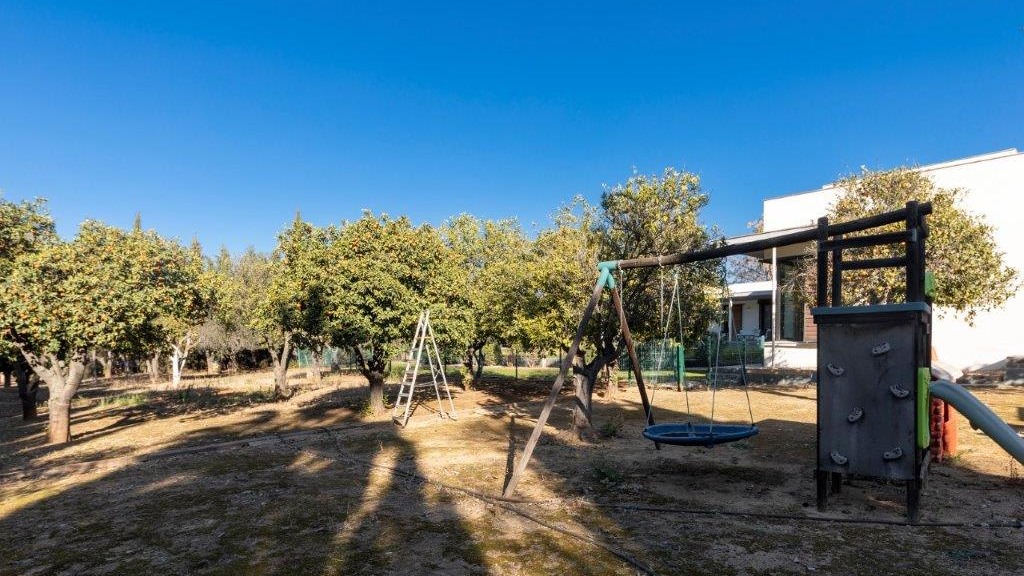 Finally, there is a flat on the first floor of 70 m², with private bathroom and access to two terraces.3.400 m² plot has different environments: lawn area, area with fruit trees (orange trees, lemon trees, almond trees, apple trees, Japanese plum trees) and orchard.