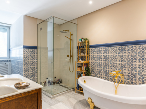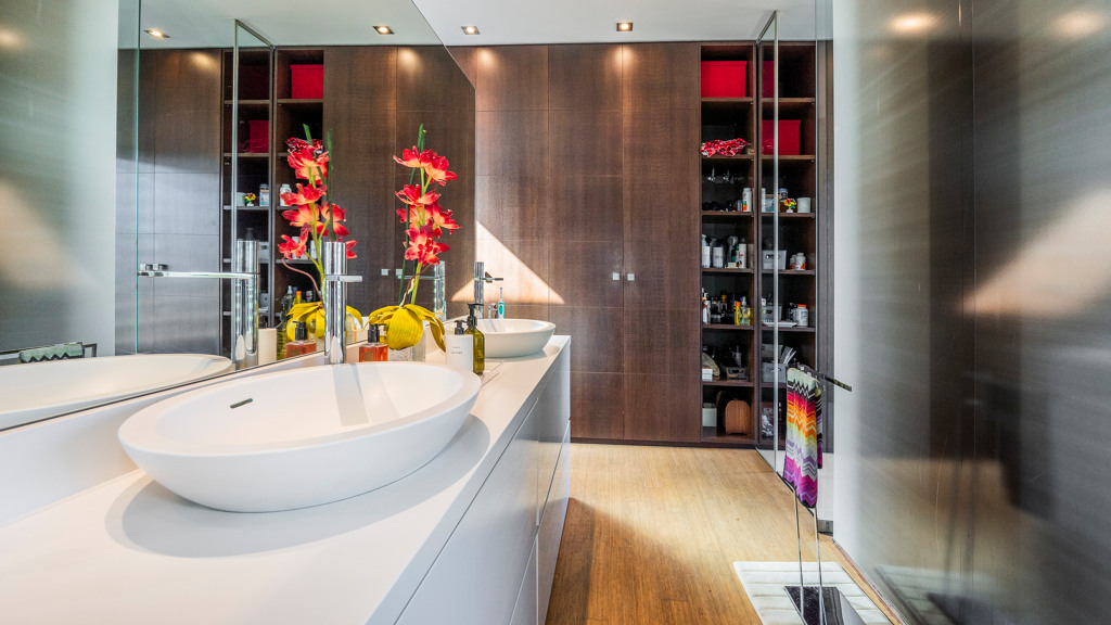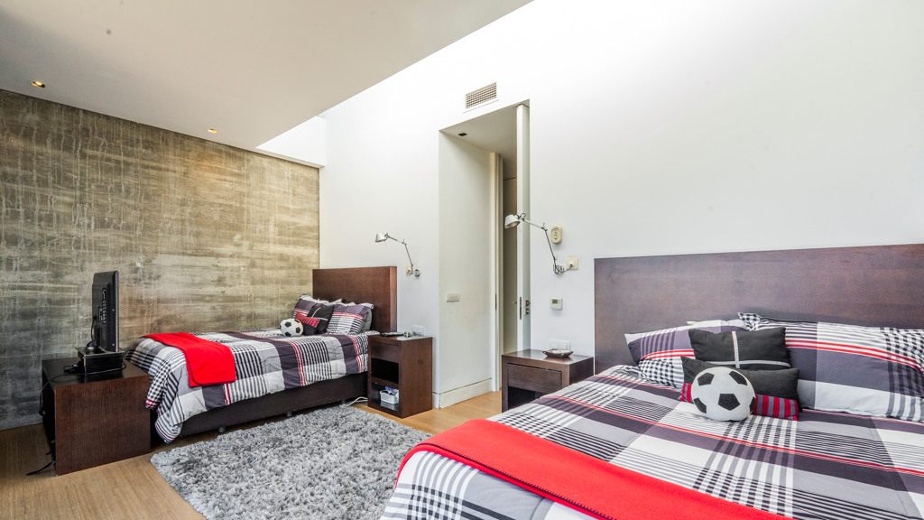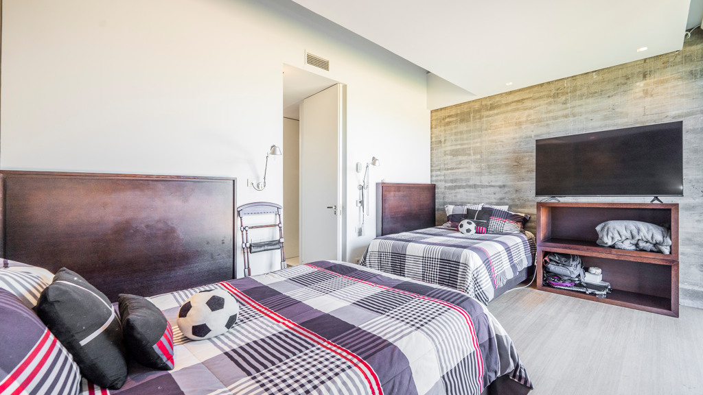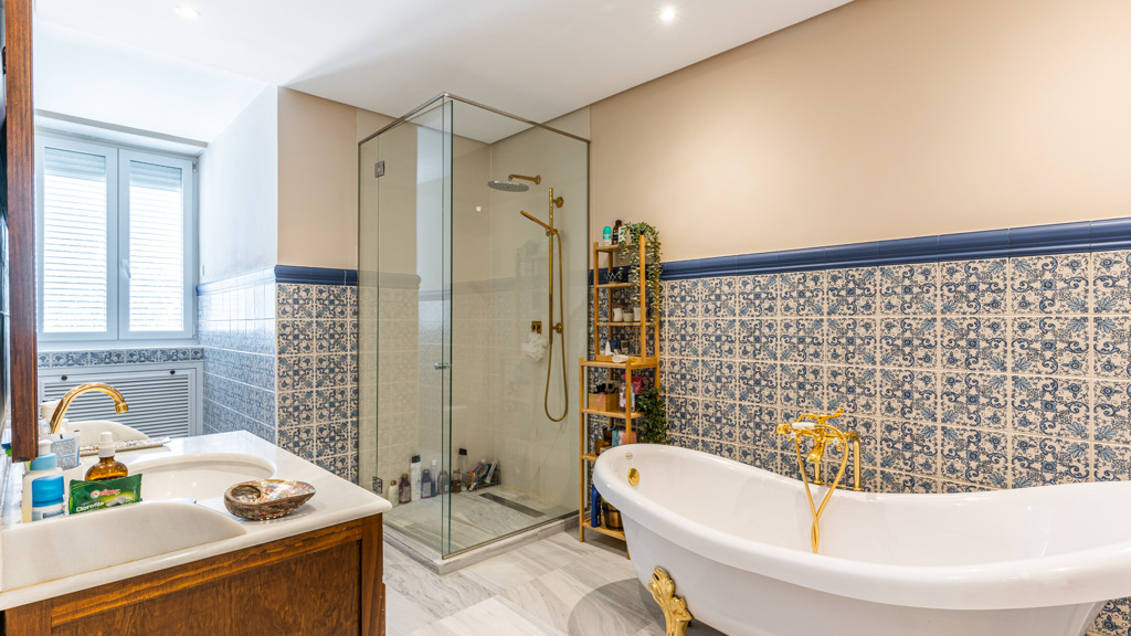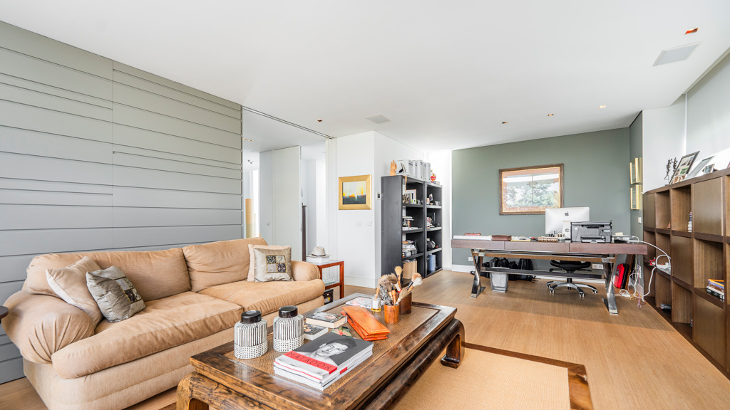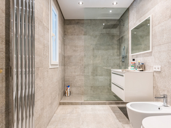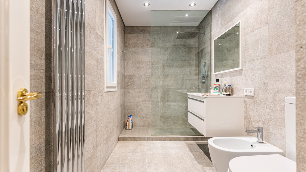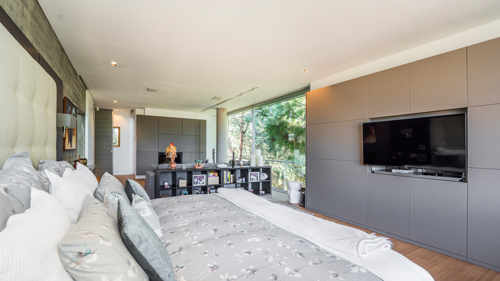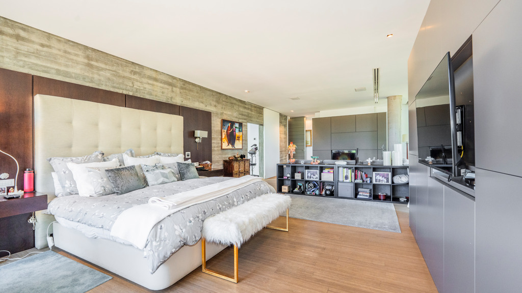 Through a staircase, we access the bedroom area. On the first floor, we find 4 en-suite bedrooms, the main one being especially impressive, as it has a living room and a dressing area in the bathroom. There is also a TV room and an office with a terrace.