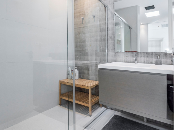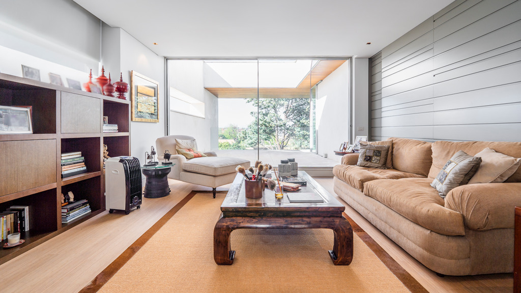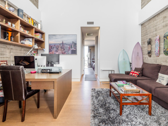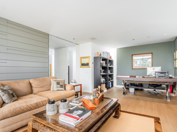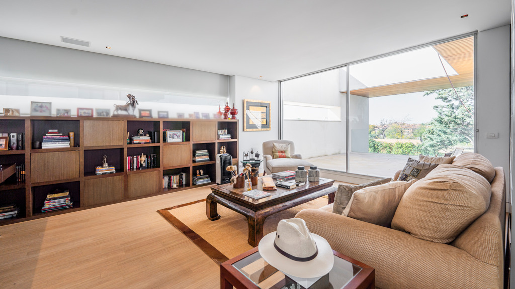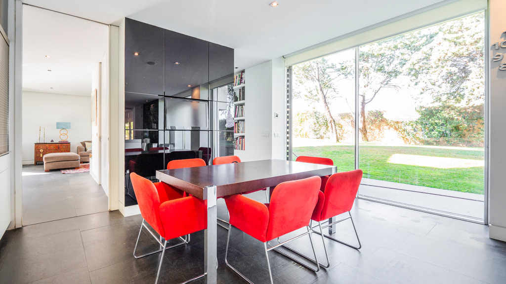 Upon entering the property, we are greeted by a hall with high ceilings that distributes us into two areas. On the main floor, we find a spacious living room – dining room and a guest toilet. From the living room you can access the garden and the pool, the porch occupies the entire facade of the glass-enclosed living room to enjoy the privacy and views of the garden. In the other area we find a living room with a more family-friendly dining room for everyday use, a bathroom and an independent kitchen with an island and office from which you can access the two areas of the floor.