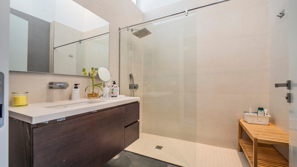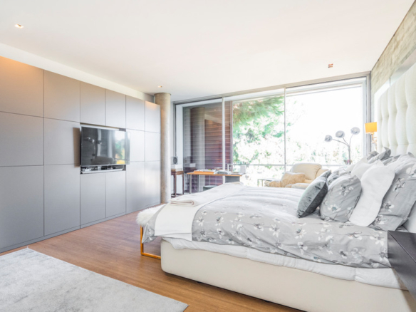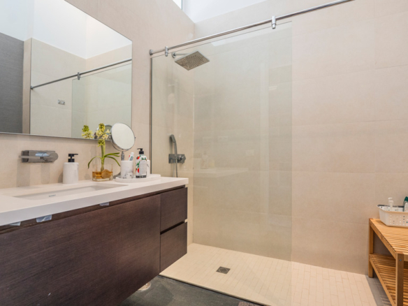 It is worth highlighting the glass walls and the extreme security with the automatic security shutters throughout the house.