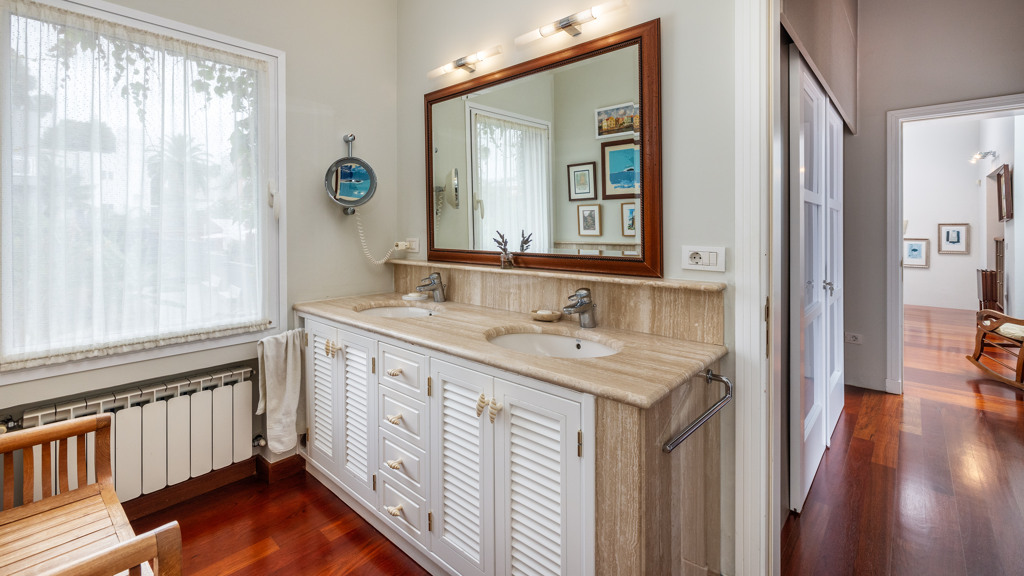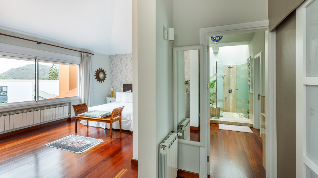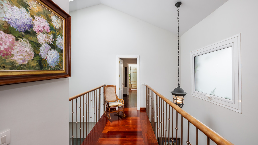Its current owners are the ones who, with the care that one puts to his new home, built this house with every detail of details to enjoy with the family. It is distributed on two floors above ground plus a basement with garage for three cars, wine cellar, gym and large storage room with closets for storing seasonal clothing. On the first floor we find main access and a service access, a spacious living room with fireplace connected to a dining room and exit to the porch, from where you can enjoy the one hundred and fifty meters of garden that could be considered the jewel of the house. On this floor and also with access to the porch you will have your office, a guest toilet, kitchen with separate pantry and laundry and ironing area with roofed clothesline. On the ground floor the rest area with living room, two bedrooms with a bathroom and a master bedroom with double dressing room and bathroom en suite. The high ceilings of the master bedroom are the result of the gable roof and the light that enters through the different lights and windows so cleverly placed. The construction quality of the house, its condition and its style make this house a very good option to choose in the market of Tafira.