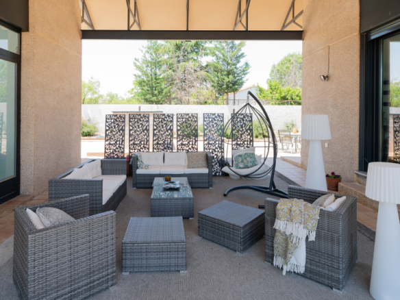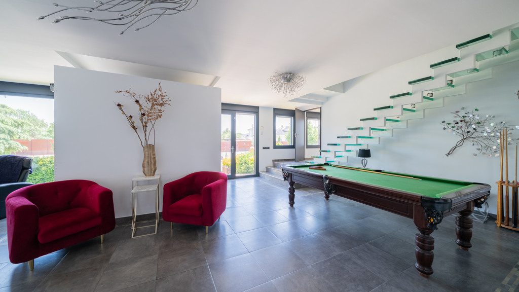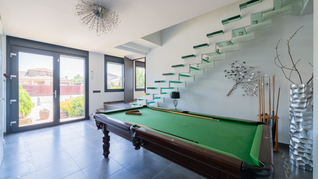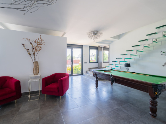 The home sits on an impressive plot of nearly 4,100 m², where you can enjoy a beautifully landscaped garden and a private pool that conceals a remarkable feature.