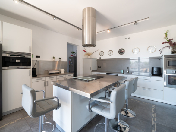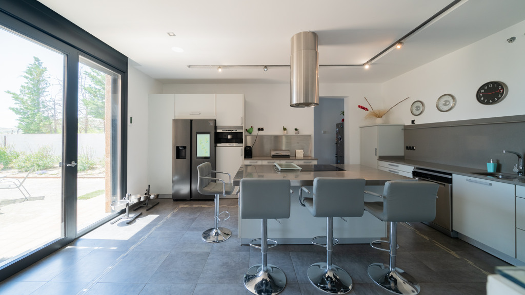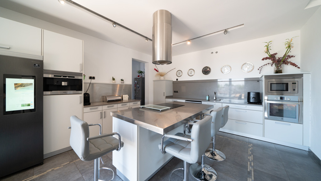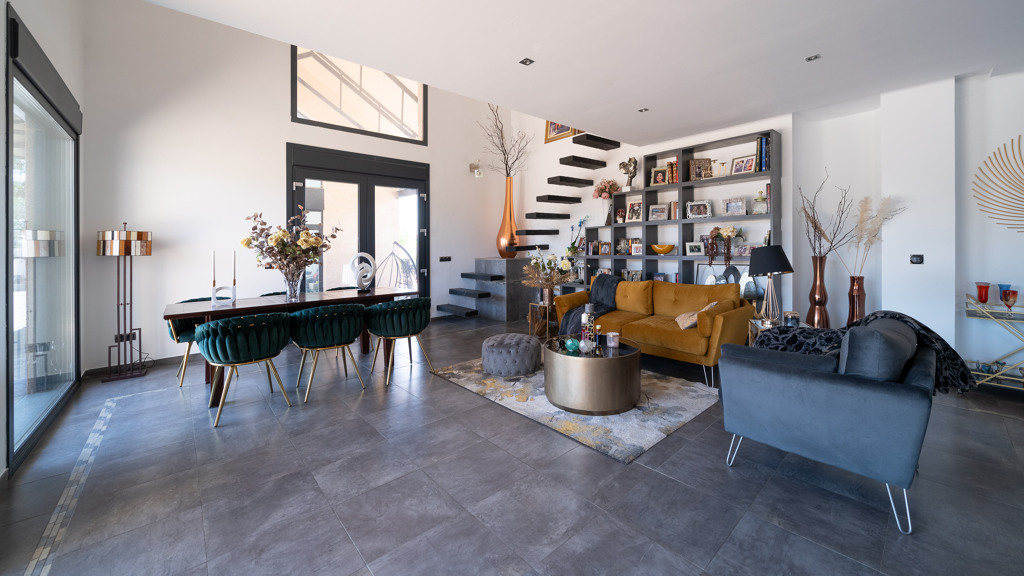 One of the highlights of this property is its A-rated energy certification, thanks to high-efficiency systems such as underfloor heating and cooling, aerothermal technology, solar panels, and custom-made, high-quality large windows. These features ensure year-round comfort and reduced energy consumption.