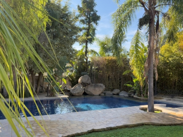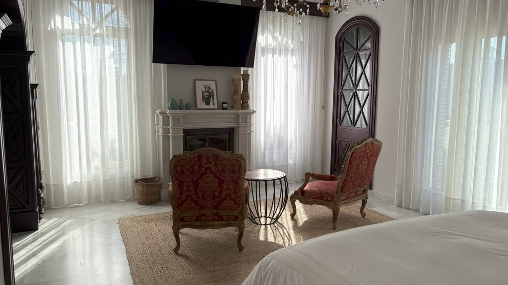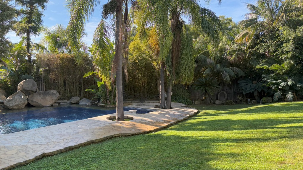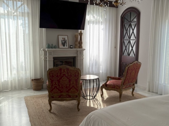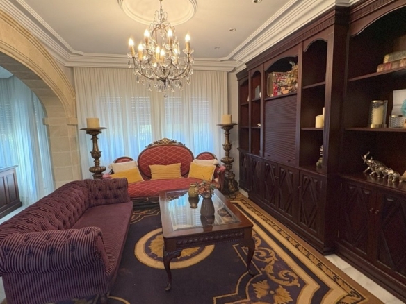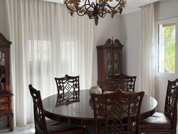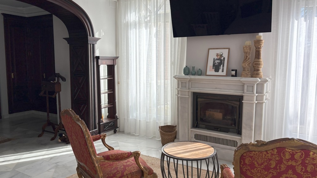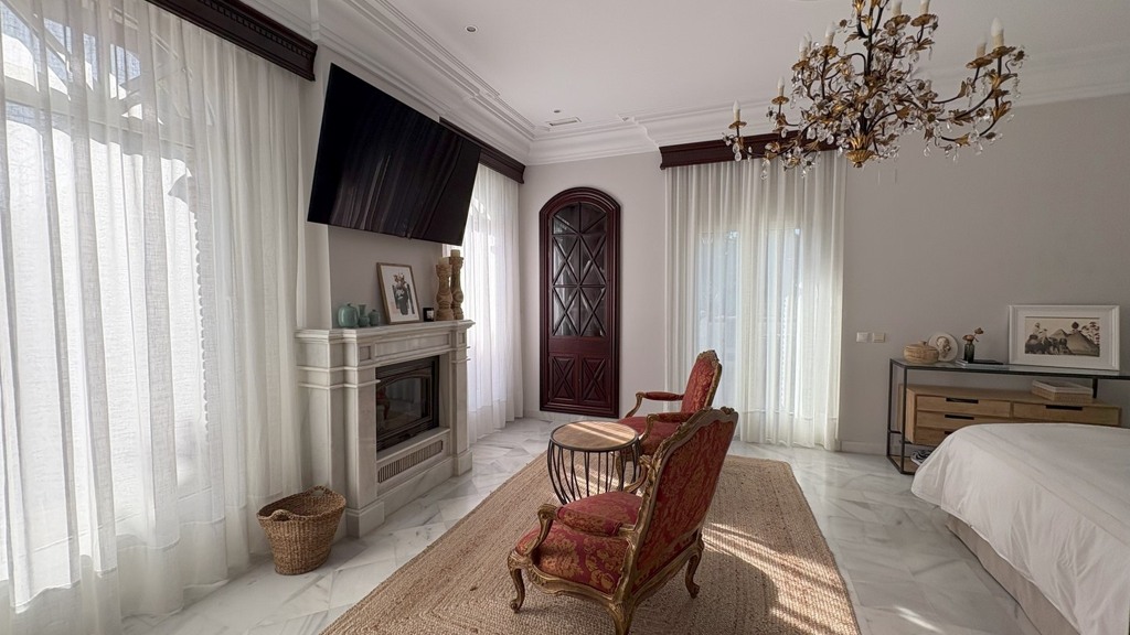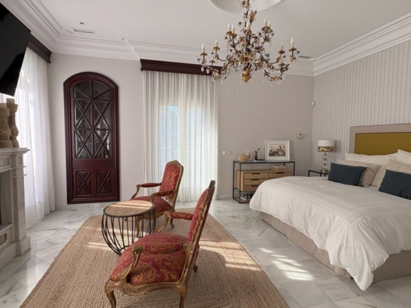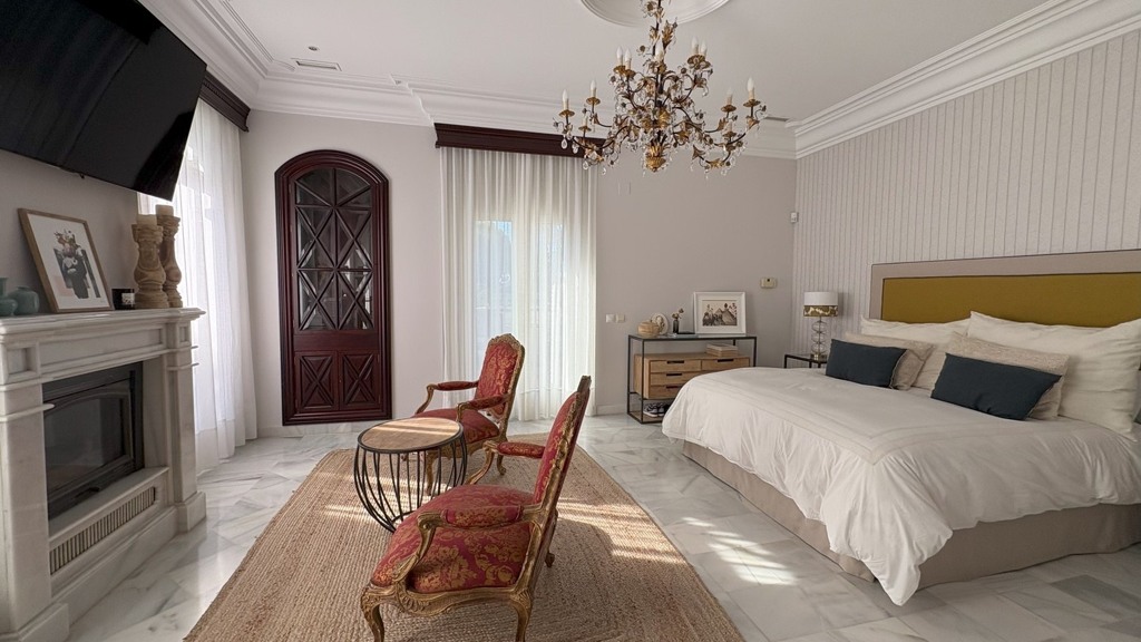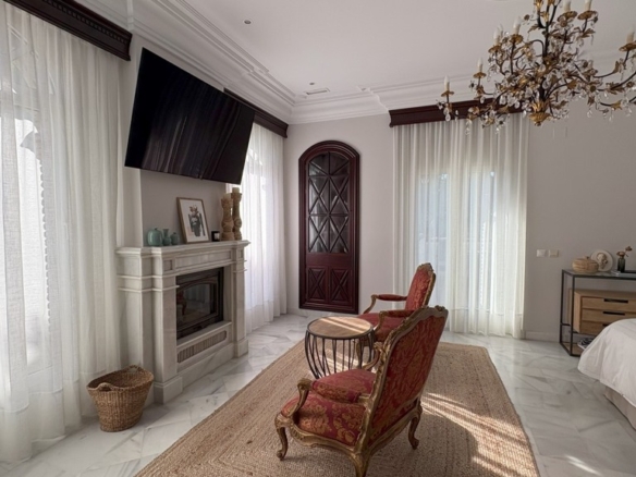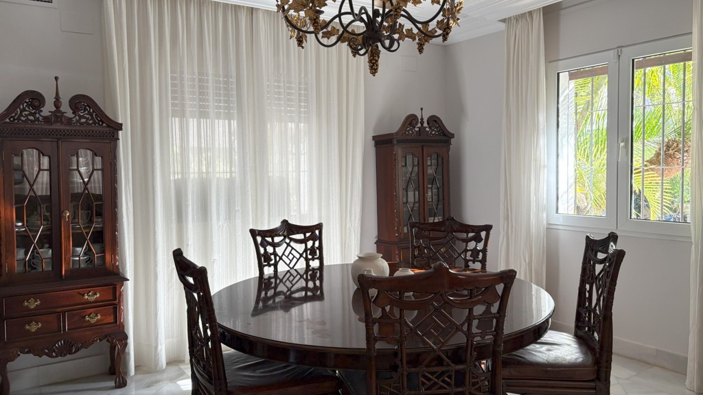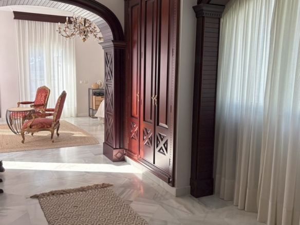 Gilmar offers you this impressive property located in the prestigious urbanization of Vistahermosa. This majestic property has a total built area of 700 square meters on a plot of over 2,000 square meters. The plot forms a small hill, with the house located at the top and towards the back. It consists of two houses. The main house, with two floors, has 6 bedrooms and 5 bathrooms, and is surrounded by a highly landscaped garden, with exotic species of palm trees and different classic ornamental elements, such as fountains and ceramics from Guadarte and Mensaque. In front of the porch, there is a pleasant swimming pool with summer dining area. Next to it, and built underground, there is a nice changing room with toilet that will surprise you with its originality.