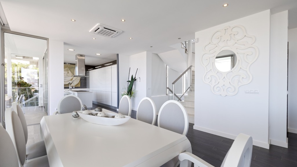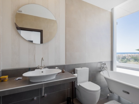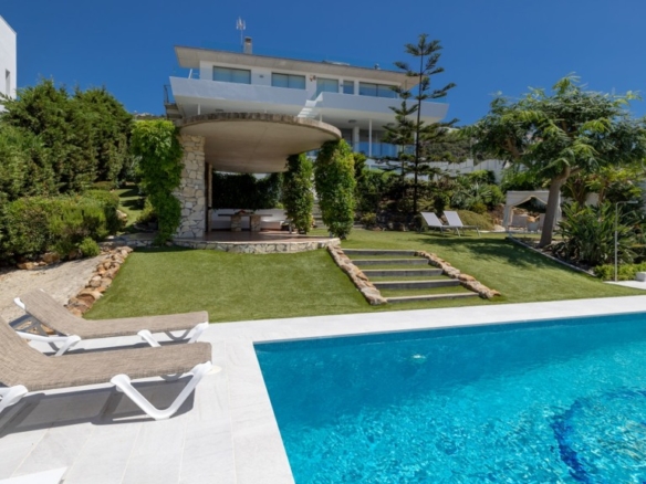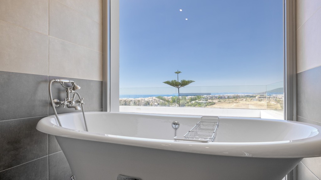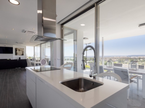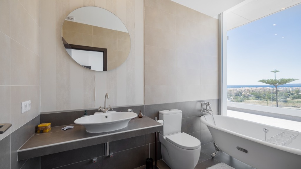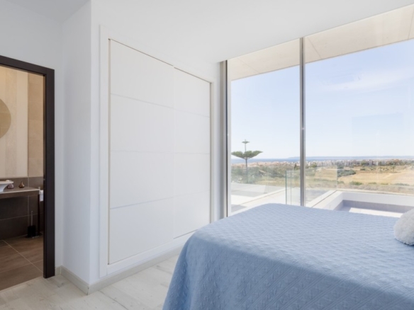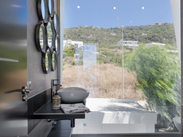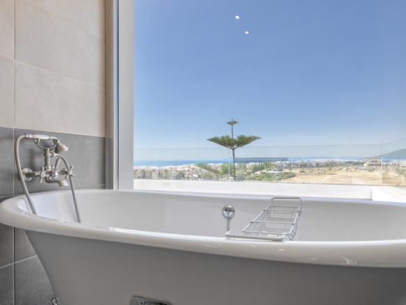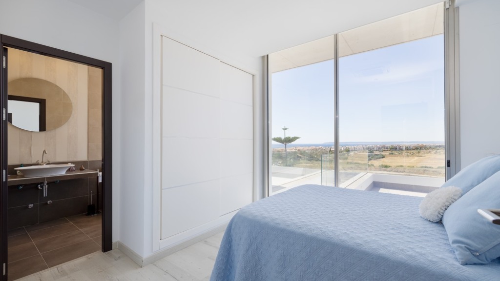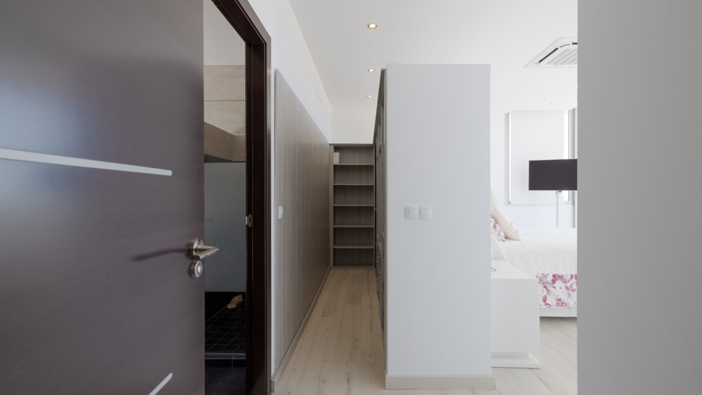 First floor: accessed via a glazed spiral staircase with views of the mountains. This floor consists of three large bedrooms, all with views of the sea and the mountains, with en-suite bathrooms and access to a terrace. Two of them have access to a large communal terrace and the other bedroom, the master bedroom, also has a dressing room and access to a private terrace.