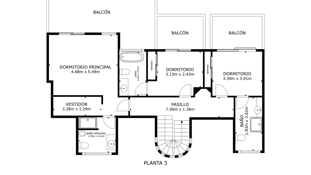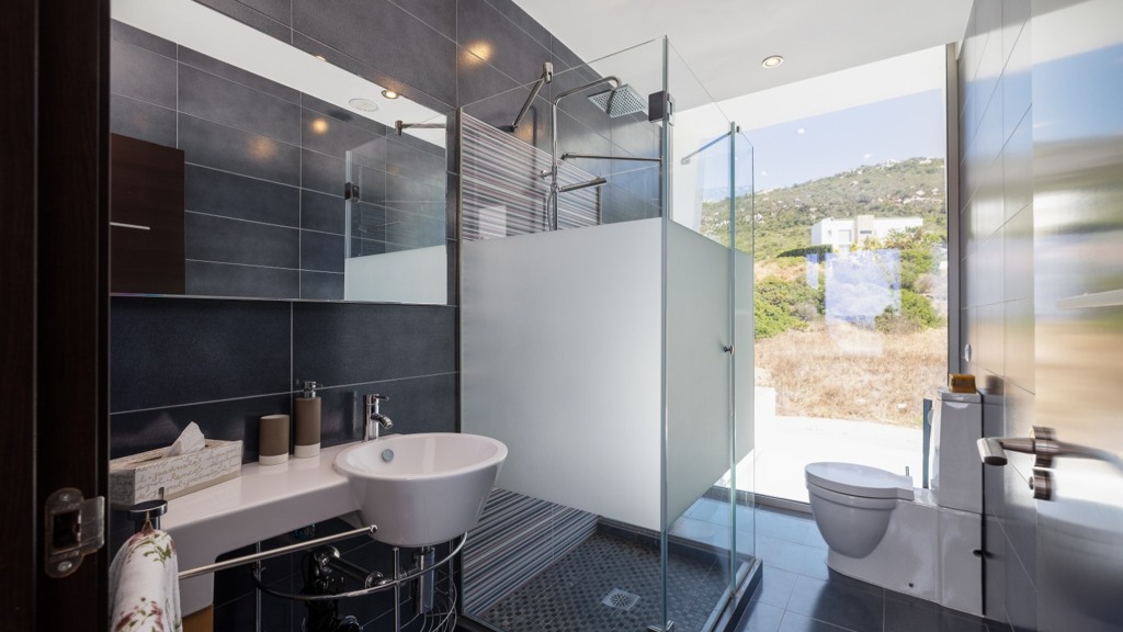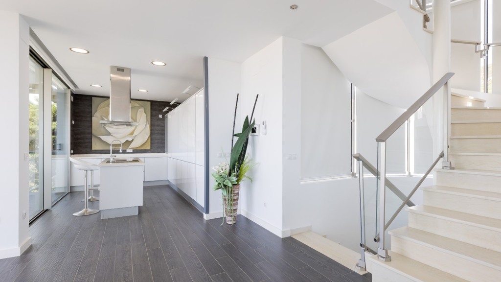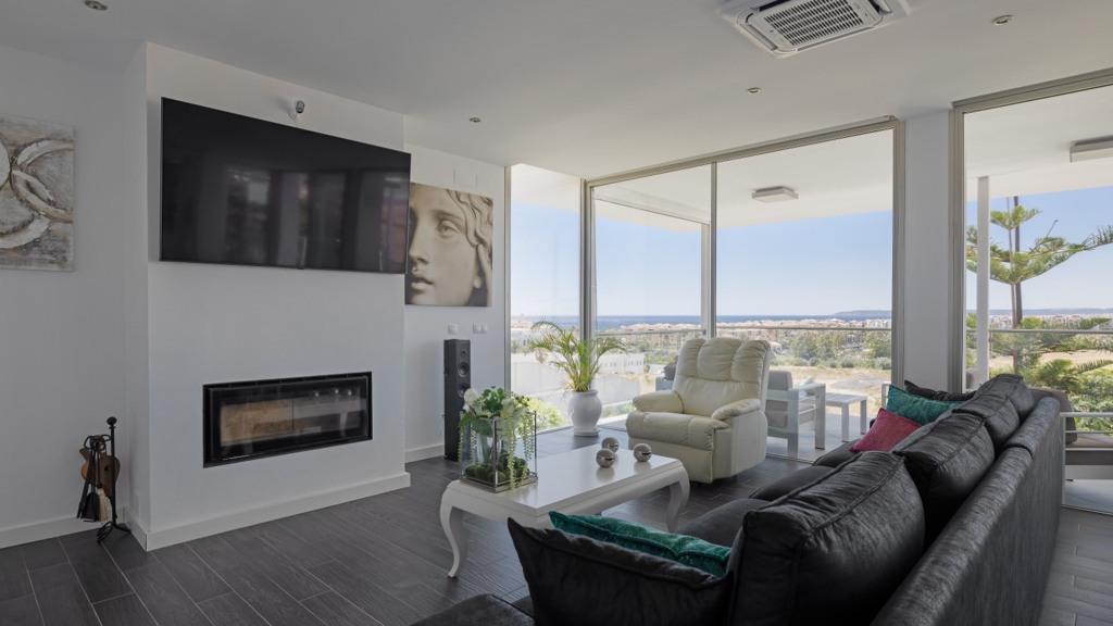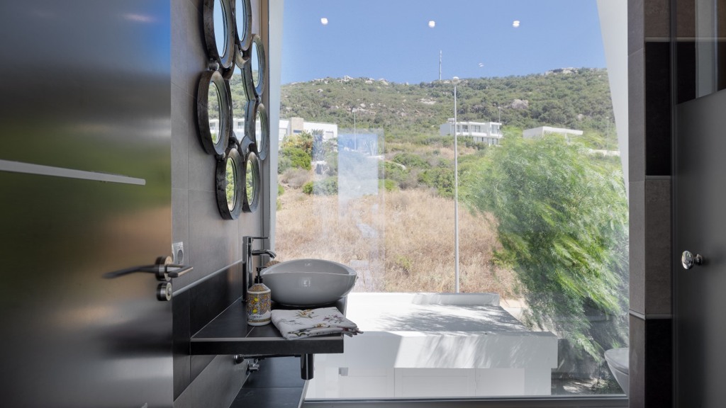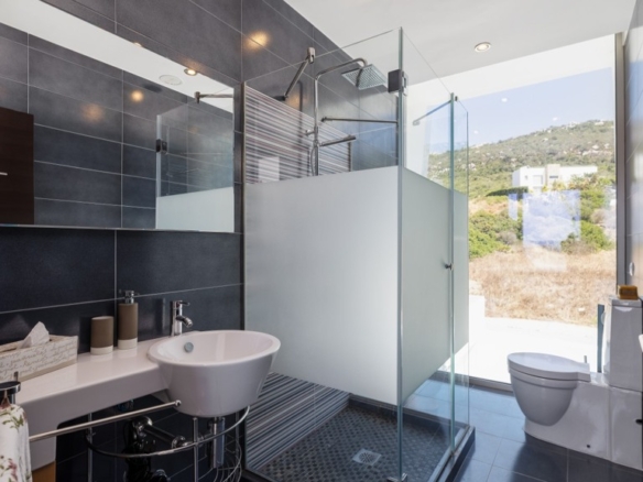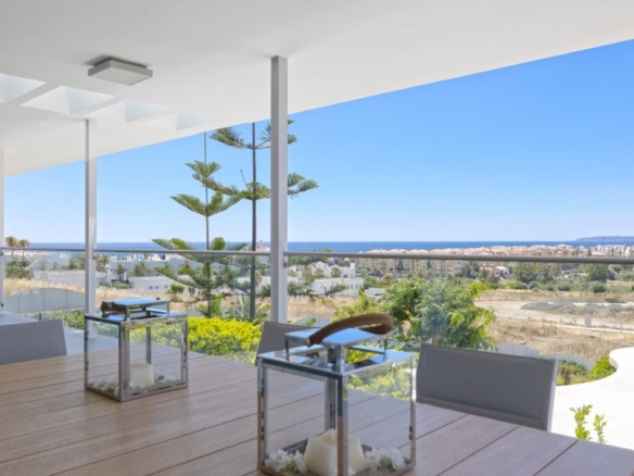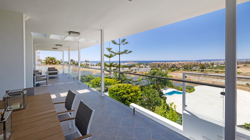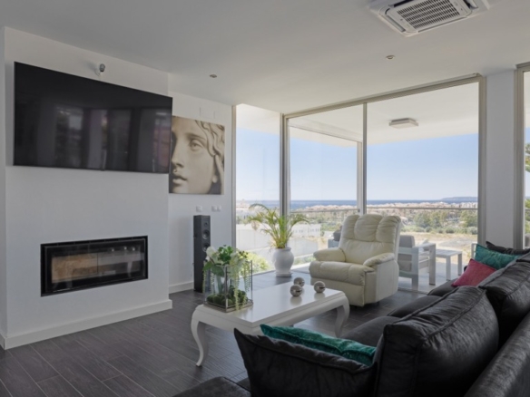 First floor: accessed via a glazed spiral staircase with views of the mountains. This floor consists of three large bedrooms, all with views of the sea and the mountains, with en-suite bathrooms and access to a terrace. Two of them have access to a large communal terrace and the other bedroom, the master bedroom, also has a dressing room and access to a private terrace.