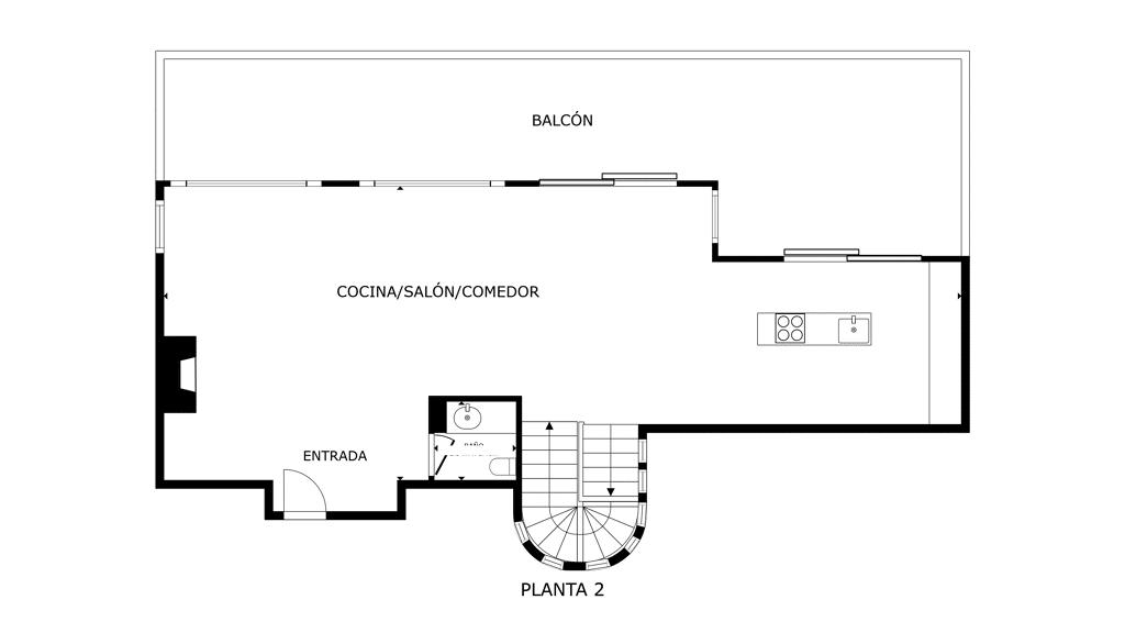 Ground floor: As soon as we open the door, we can enjoy the privileged views of the house. With great criteria, the owners have designed a single open room without partitions, leaving the entire front façade completely glazed, with sliding armoured doors, which let the entire exterior landscape be seen, while allowing the maximum amount of light to enter. This floor consists of a living-dining room with a cassette fireplace, an open-plan kitchen with island, from which we can also enjoy the views while cooking, and a guest toilet. The whole floor is connected to its magnificent front porch of more than 50 square metres.